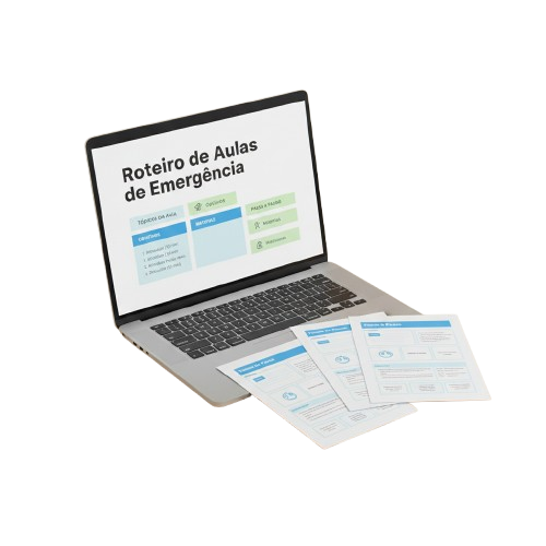 Você terá em mãos cinco aulas de emergência prontas para imprimir e aplicar, quando surgir algum imprevisto, sem pânico, sem correria.