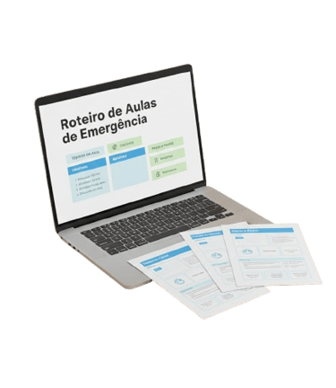 Você terá em mãos cinco aulas de emergência prontas para imprimir e aplicar, quando surgir algum imprevisto, sem pânico, sem correria.